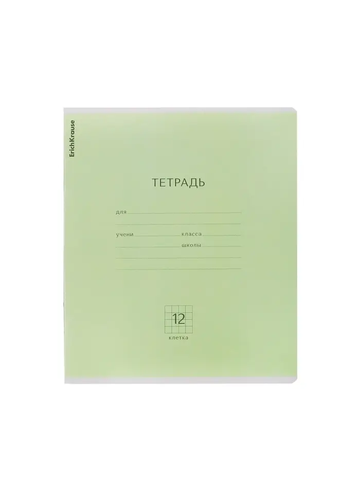 Тетрадь 12 листов в клетку, ErichKrause «Классика», зелёная