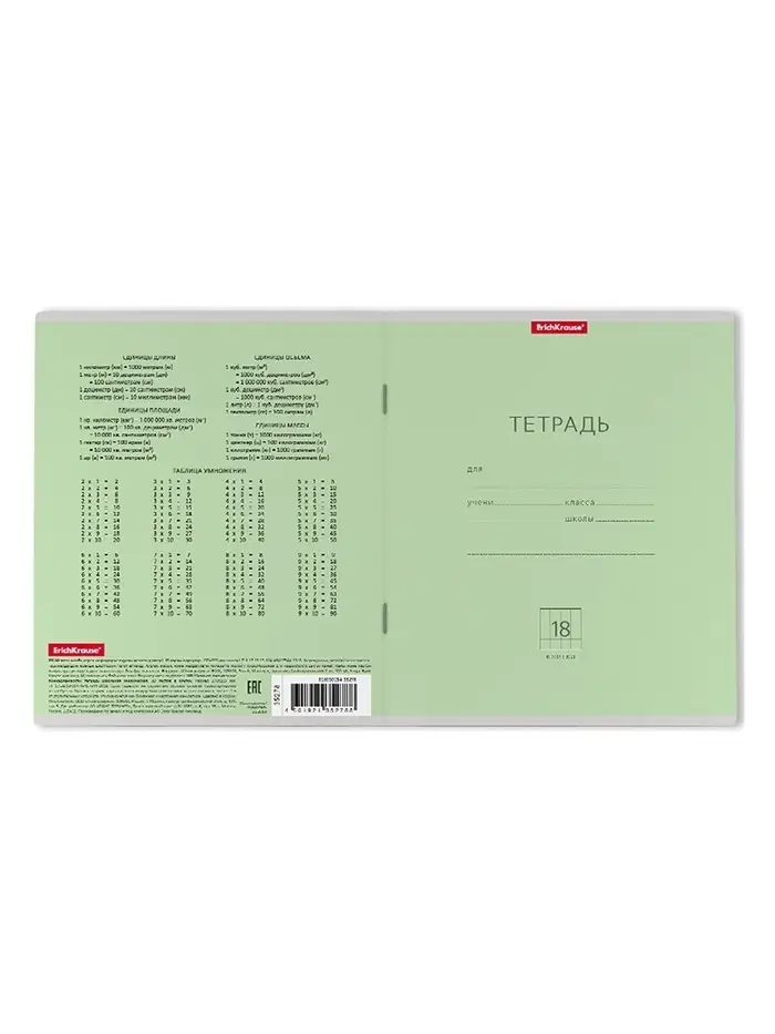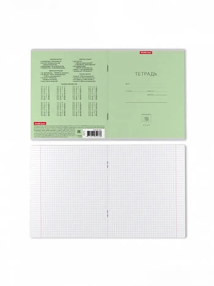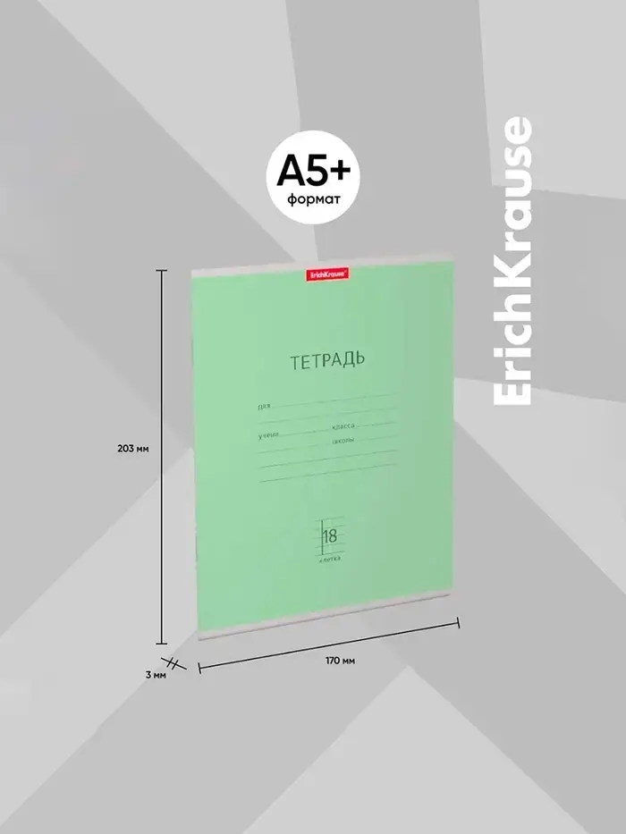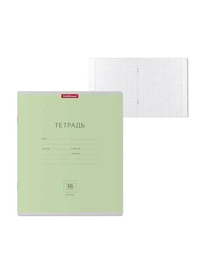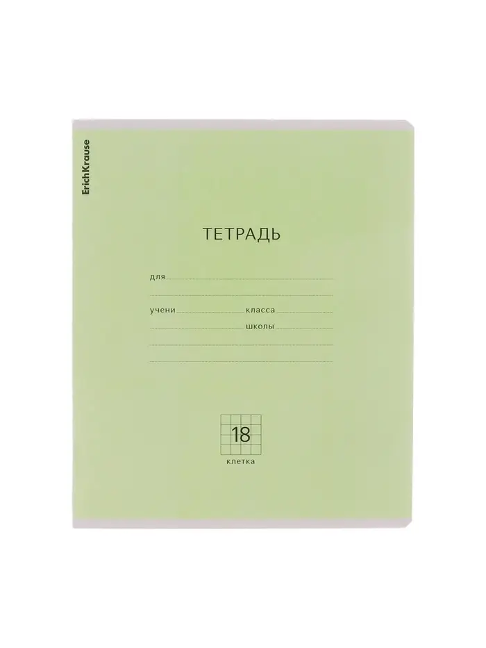 Тетрадь 18 листов в клетку, ErichKrause «Классика», обложка мелованный картон, блок офсет 100% белизна, зелёная
