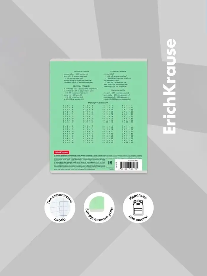 Тетрадь школьная ученическая формата А5+ (170 х 203 мм). Обложка из высококачественного мелованного картона плотностью 180 г/м2. В блоке 18 листов в клетку с полями. Бумага офсетная плотностью 60 г/м2. Цвет линовки - синий. Скругленные уголки обложки и блока. Тип скрепления - скоба. Тетради упакованы в термоусадочную пленку по 10 штук.