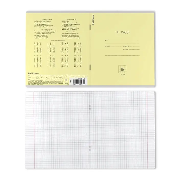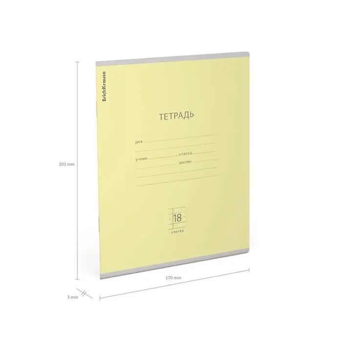 Тетрадь 18 листов в клетку ErichKrause «Классика», обложка мелованный картон, жёлтая