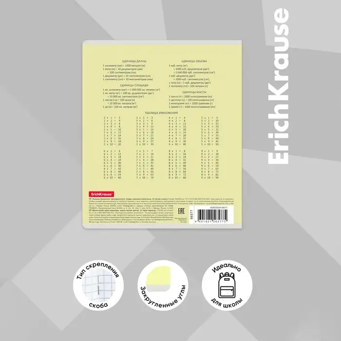 Тетрадь школьная ученическая формата А5+ (170 х 203 мм). Обложка из высококачественного мелованного картона плотностью 180 г/м2. В блоке 18 листов в клетку с полями. Бумага офсетная плотностью 60 г/м2. Цвет линовки - синий. Скругленные уголки обложки и блока. Тип скрепления - скоба. Тетради упакованы в термоусадочную пленку по 10 штук.