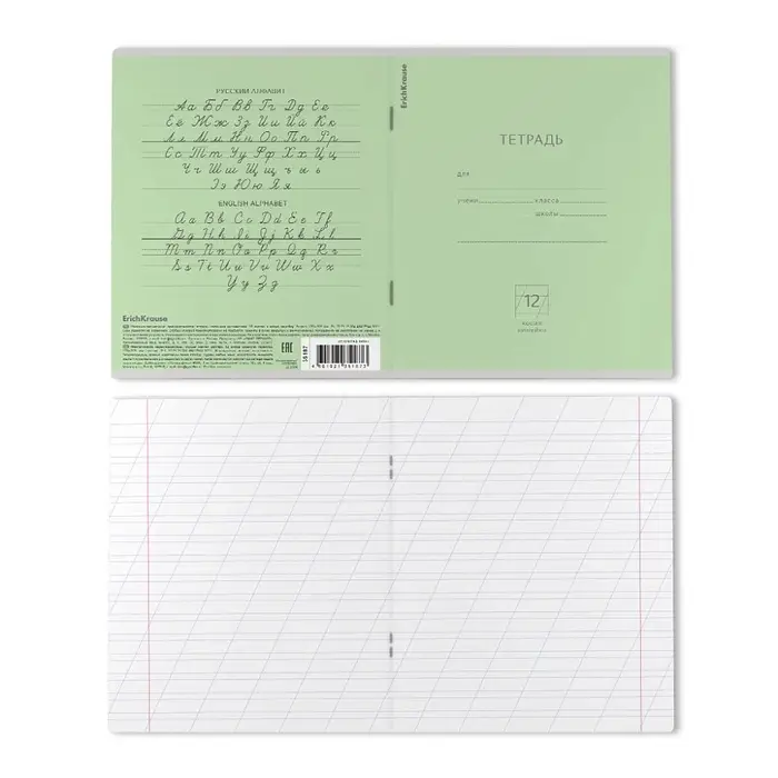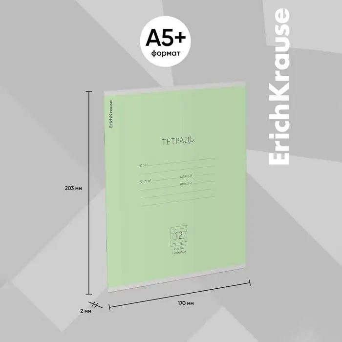 Тетрадь школьная ученическая формата А5+ (170 х 203 мм). Обложка из высококачественного мелованного картона плотностью 180 г/м2. В блоке 12 листов в косую линейку с полями. Бумага офсетная плотностью 60 г/м2. Цвет линовки - синий. Скругленные уголки обложки и блока. Тип скрепления - скоба. Тетради упакованы в термоусадочную пленку по 10 штук.