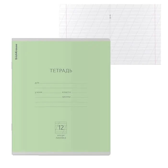 Тетрадь 12 листов в косую линейку ErichKrause «Классика», обложка мелованный картон, зелёная