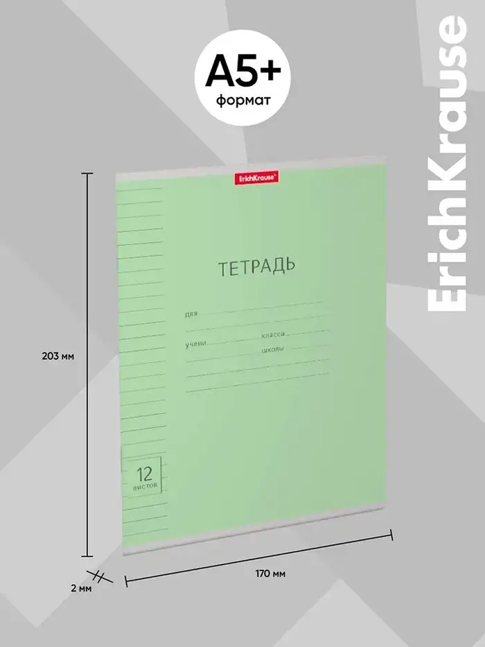 Тетрадь школьная ученическая формата А5+ (170 х 203 мм). Обложка из высококачественного мелованного картона плотностью 180 г/м2. В блоке 12 листов в линейку с полями. Бумага офсетная плотностью 60 г/м2. Цвет линовки - синий. Скругленные уголки обложки и блока. Тип скрепления - скоба. Тетради упакованы в термоусадочную пленку по 10 штук.
