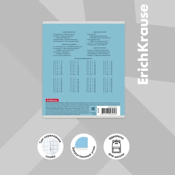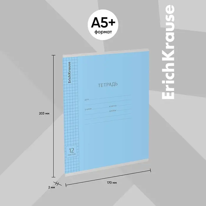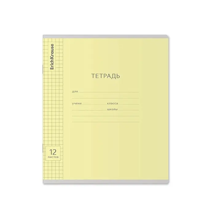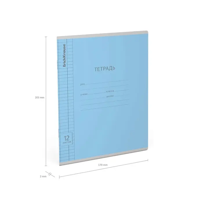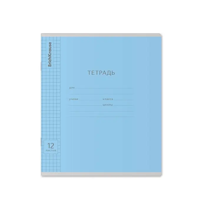 Тетрадь школьная ученическая формата А5+ (170 х 203 мм). Обложка из высококачественного мелованного картона плотностью 180 г/м2. В блоке 12 листов в клетку с полями. Бумага офсетная плотностью 60 г/м2. Цвет линовки - синий. Скругленные уголки обложки и блока. Тип скрепления - скоба. Тетради одного цвета упакованы в термоусадочную пленку по 10 штук. Товар поставляется в нескольких вариантах цвета без возможности выбора.