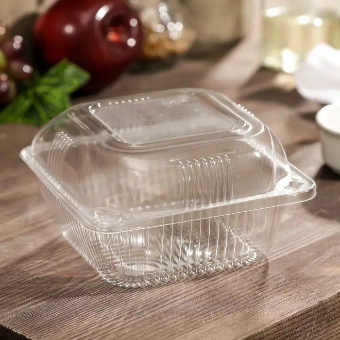 Изготовленный из прочного ПЭТ пластика, этот одноразовый контейнер обеспечивает отличный обзор содержимого. Неразъемная крышка надежно защищает десерты от повреждений и сохраняет их свежесть. Оптимальный размер (13×13×7,5 см) позволяет удобно разместить десерты разных форм и размеров. Прозрачный контейнер для торта – это отличный выбор для кондитеров, кафе и служб доставки.