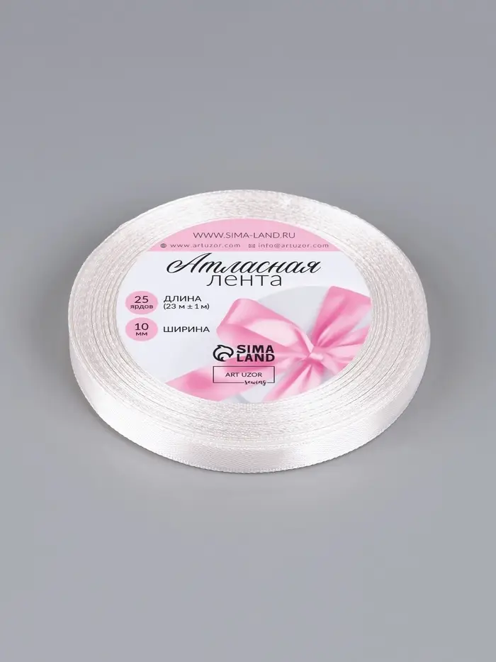 Лента атласная, 10 мм × 23 ±1 м, белая №01