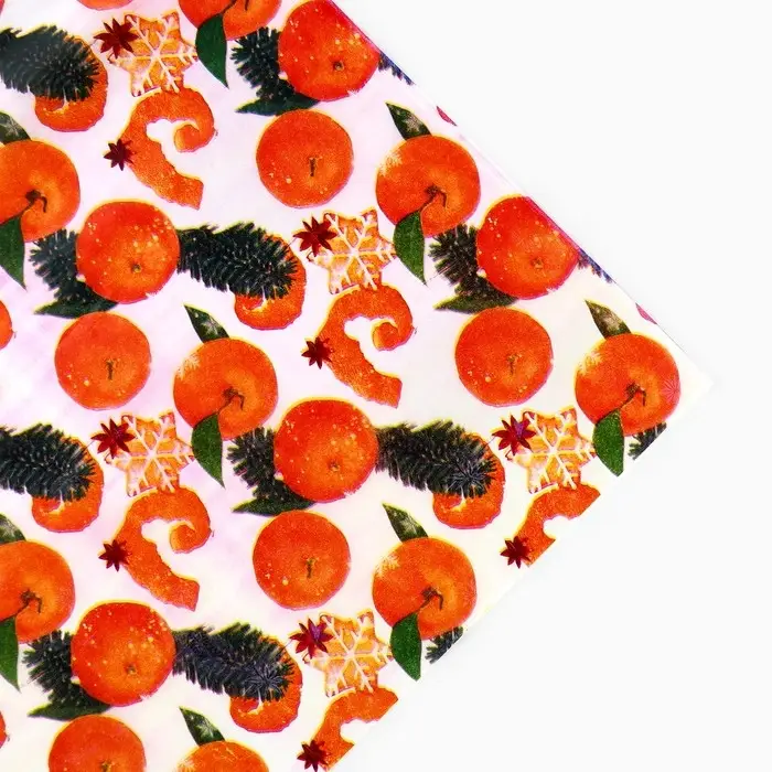 Упаковочная бумага на новый год тишью «Мандарины», 50 х 66 см