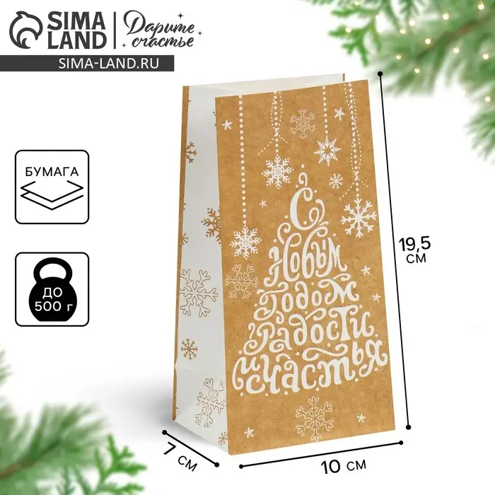 Пакет без ручек «С Новым годом! Радости и счастья!», 10 х 19.5 х 7 см