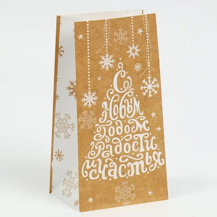 Пакет без ручек «Новогоднее время», 10 х 19,5 х 7 см