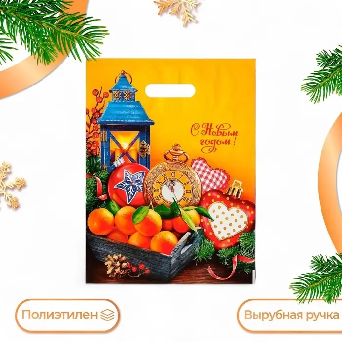 Пакет новогодний «Мандарины», полиэтиленовый с вырубной ручкой, 31×40 см