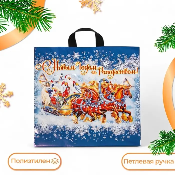 Пакет «Новогоднее веселье», полиэтиленовый с петлевой ручкой, 44×44 см