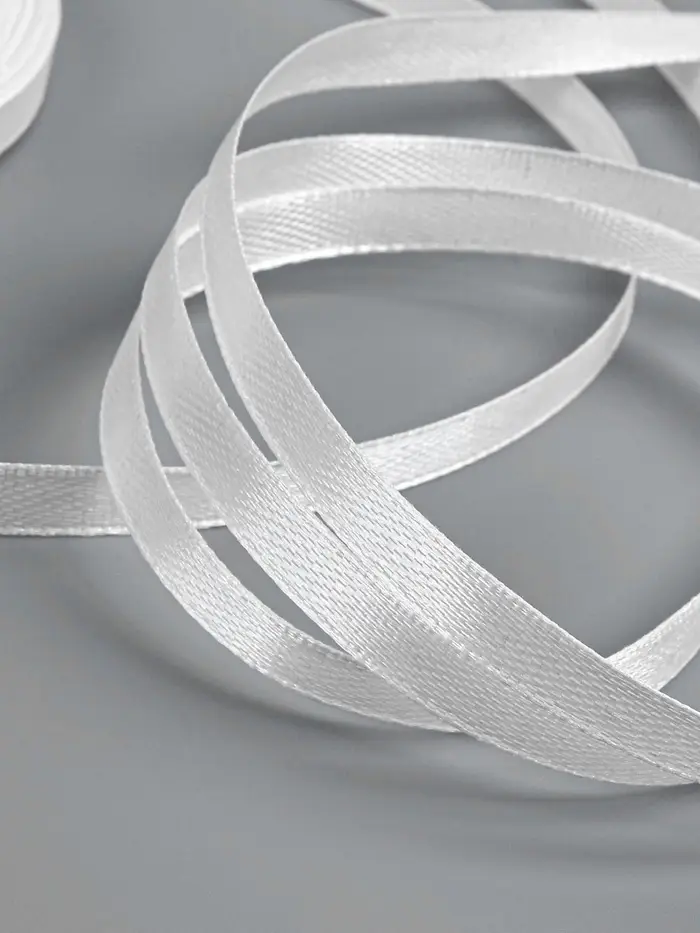 Изысканная белая атласная лента — ваш надежный спутник в мире рукоделия и декора. Это идеальное решение для проектов, которые требуют аккуратности и стиля.