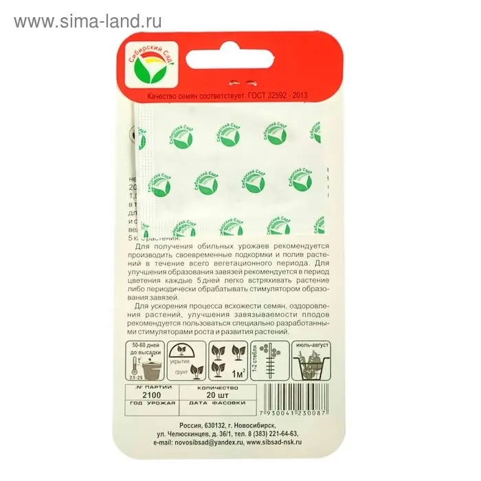 Новый сорт сибирских селекционеров, отличающийся необычайно длинными сигаровидными плодами длиной 20-25 см. Растение индетерминантное, высотой до 1,5-1,8 м, предназначено для выращивания в 1-2 стебля в теплицах и открытом грунте. Плоды красно-малиновые, длинные, (их можно разломить, как огурец), мясистые и очень вкусные, массой 200-250 г (первые до 400 г), великолепны в салатах. Урожайность сорта высокая, до 5 кг с растения.
