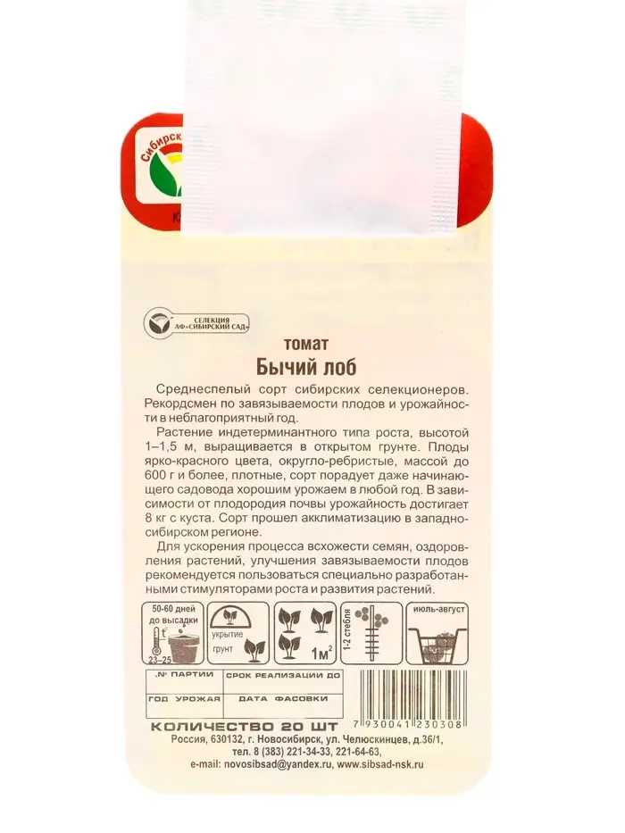 Семена Томат «Бычий Лоб», среднеспелый, 20 шт., «Сибирский сад»