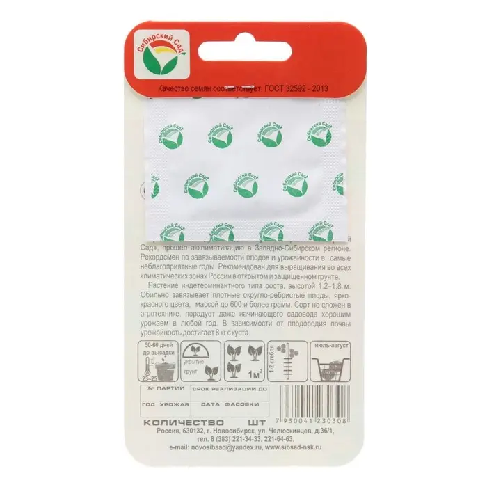 Рекордсмен по завязываемости плодов и урожайности в неблагоприятный год. Растение индетерминантного типа роста, высотой 1-1,5 м, выращивается в открытом грунте.
