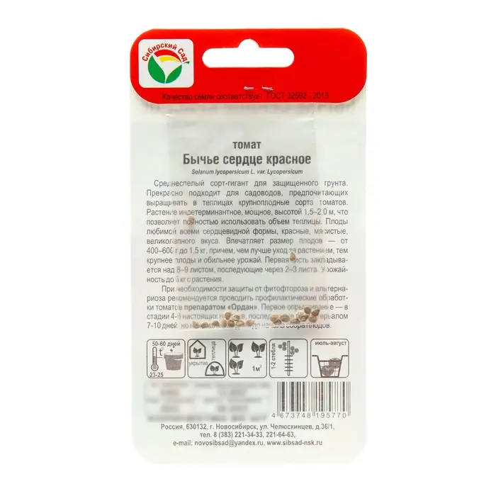 Семена Томат «Бычье сердце», красное, среднеспелый, 20 шт., «Сибирский сад»