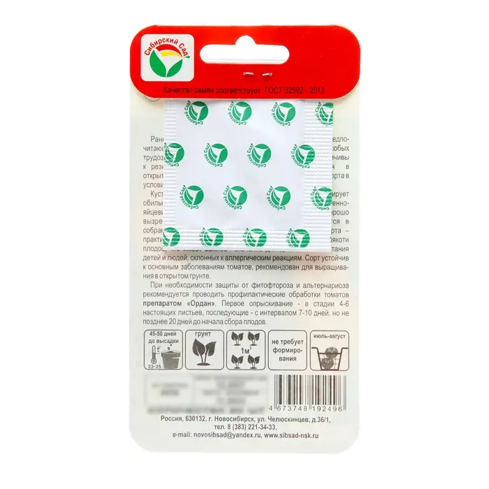 Новый раннеспелый сорт сибирской селекции для садоводов, предпочитающих низкорослые неприхотливые сорта томатов, без особых трудозатрат несущие «золотые яйца» урожая. Растения устойчивы к резким изменениям температуры, могут выращиваться в открытом грунте без подвязки и пасынкования . Куст высотой 30-40 см, компактный. Рано и дружно формирует обильный урожай красивых солнечно-желтых плодов удлиненно- яйцевидной формы, массой до 200 грамм.