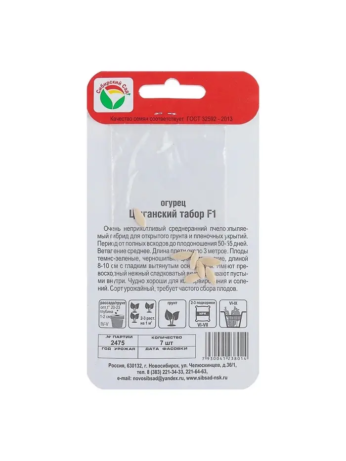 Семена Огурец "Цыганский табор" F1, среднеранний, партенокарпический, 7 шт
