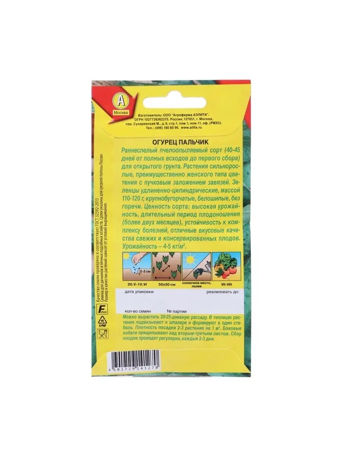 Как сажать. Семена сеют в грунт или на рассаду. Возраст рассады при высадке: 20–30 дней. Плотность посадки в открытом грунте — 4–5 шт., в теплицах — 2–3 шт. на м². В теплицах растения подвязывают к шпалере и формируют в один стебель. Боковые побеги прищипывают над вторым–третьим листом. Сбор плодов проводят каждые 2–3 дня.