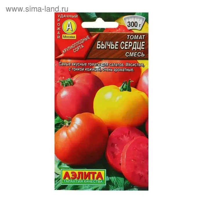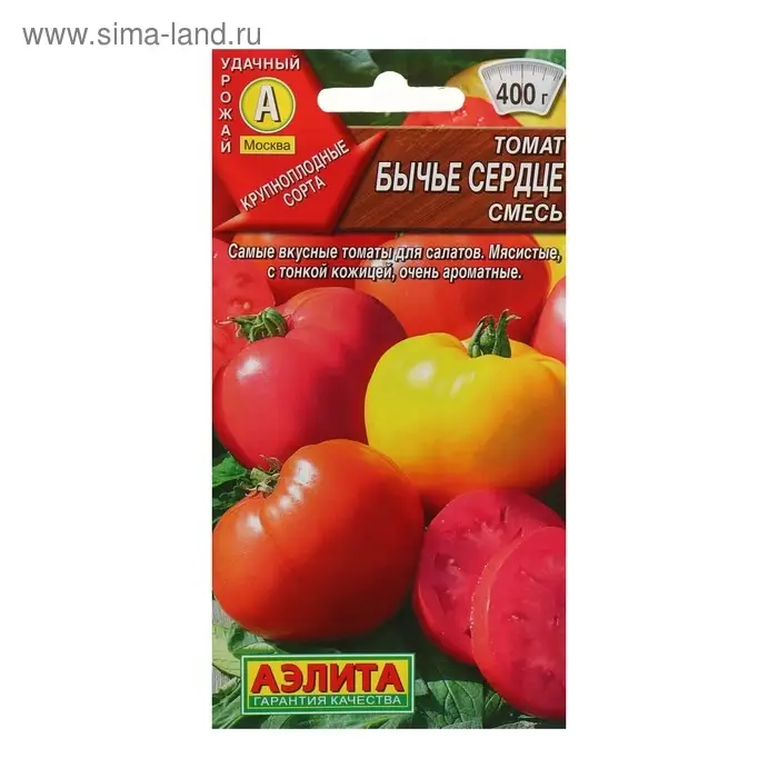 «Бычье сердце» — смесь популярных крупноплодных сортов томатов. Предназначен для открытого грунта и плёночных теплиц. Растение формирует мясистые плоды сердцевидной формы с тонкой кожицей, насыщенным вкусом и ароматом.