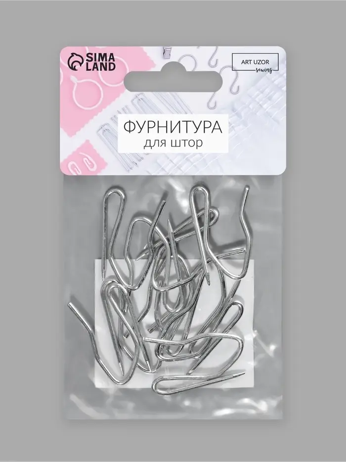 Крючки для штор, 1.8×3 см, 10 шт., цвет серебряный