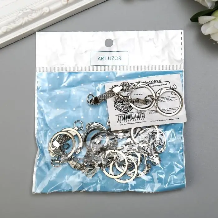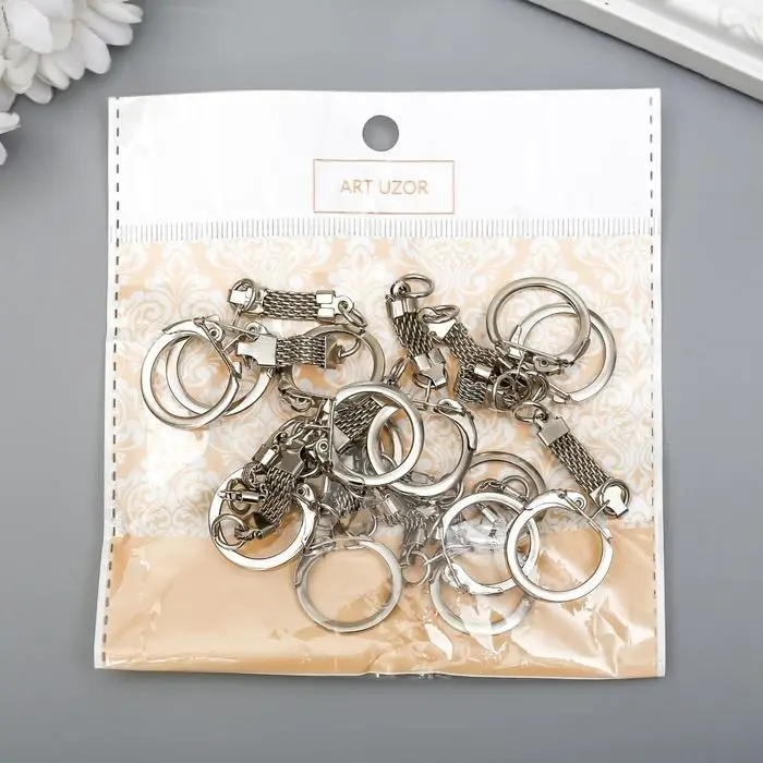 Основа для брелока карабин металл с плоской цепочкой серебро 5,8х2,2 см