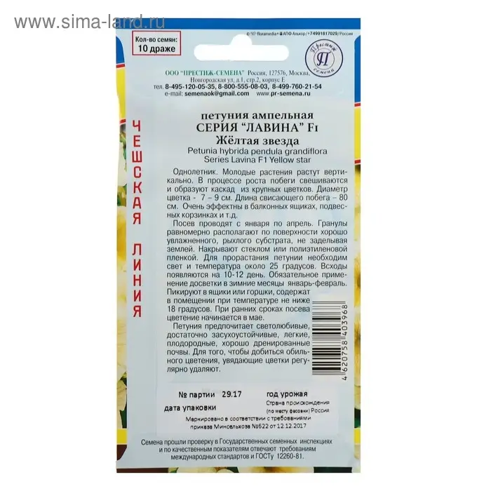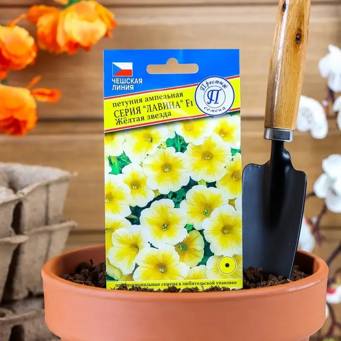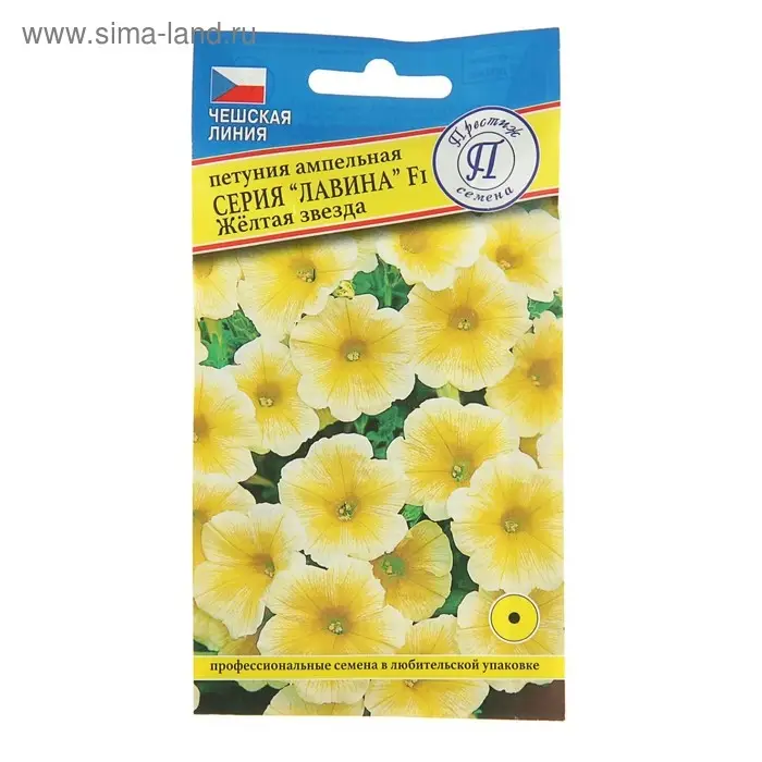 Семена цветов Петуния ампельная крупноцветковая "Лавина" Желтая звезда F1, О, драже 5 шт