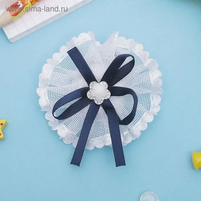 Резинка для волос бант «Школьница», лента цветок, d=6.5 см, сине-белый