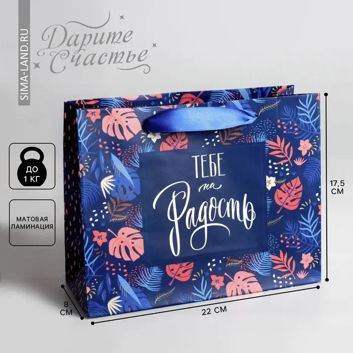 Пакет подарочный ламинированный, упаковка, «Тебе на радость» 22 х 17.5 х 8 см