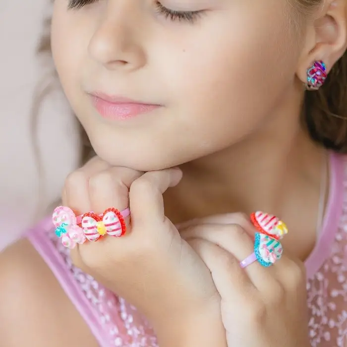 Серьги-клипсы удобно носить, так как они не требуют прокола ушей. Надёжные клипсы обеспечивают комфорт и безопасность, а их яркие цвета и блеск делают эти украшения идеальными для повседневных образов, а также для праздничных мероприятий. Серьги легко впишутся в любой наряд, добавив в него игривости и веселья.