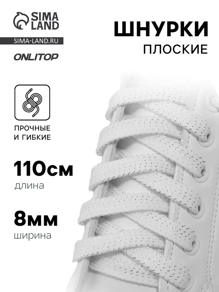 Шнурки для обуви, пара, плоские, 8 мм, 110 см, белые