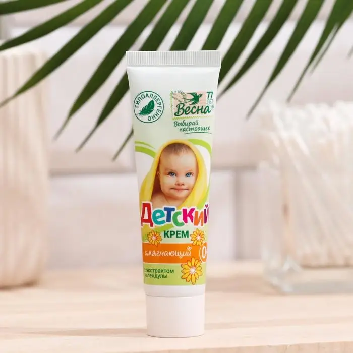 Крем детский - натуральный, безопасный продукт для детей с первых дней жизни по доступной цене. Обогащен экстрактом календулы, который обладает противовоспалительным, укрепляющим и смягчающим действием. Эффективен при решении специфических проблем кожи (высыпания, покраснения, шелушения). Имеет гипоаллергенный состав и подходит для применения с первых дней жизни.