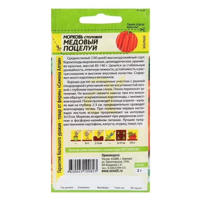 Семена Морковь "Медовый Поцелуй", цп, 2 г