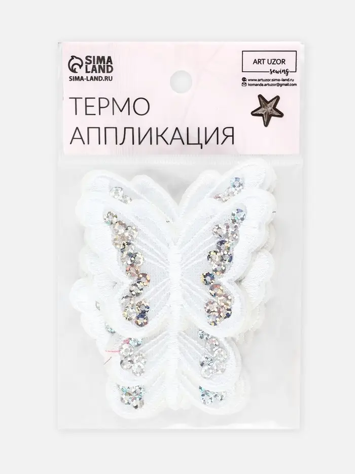 Термоаппликации «Бабочка» от торговой марки «Арт Узор» — это элегантное и стильное решение для декора текстиля. Аппликации выполнены в виде изящной бабочки с блестящими пайетками, что добавляет изделиям особую привлекательность и роскошь. Белый цвет делает их универсальными для использования на одежде или аксессуарах различных оттенков.