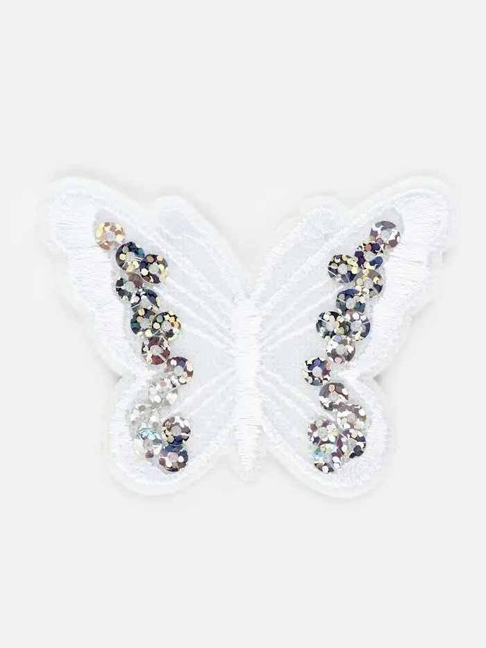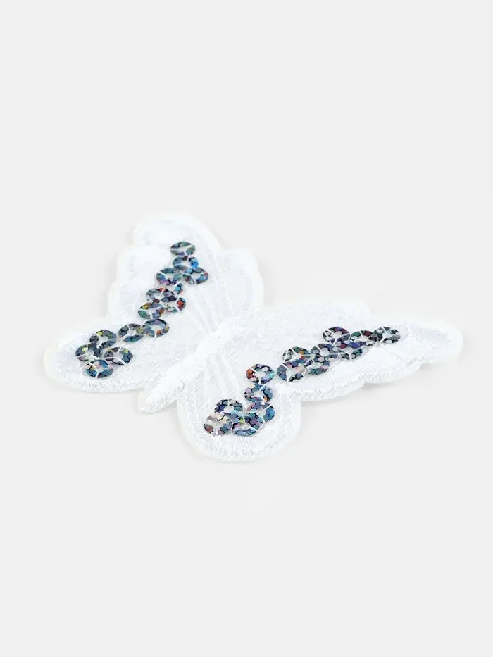 Термоаппликация «Бабочка», с пайетками, 5×6.5 см, фасовка 10 шт., белая