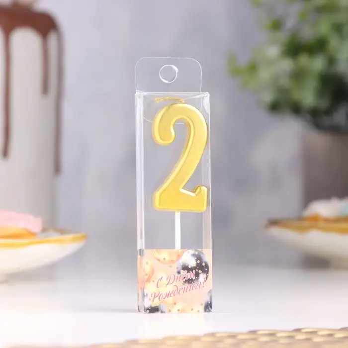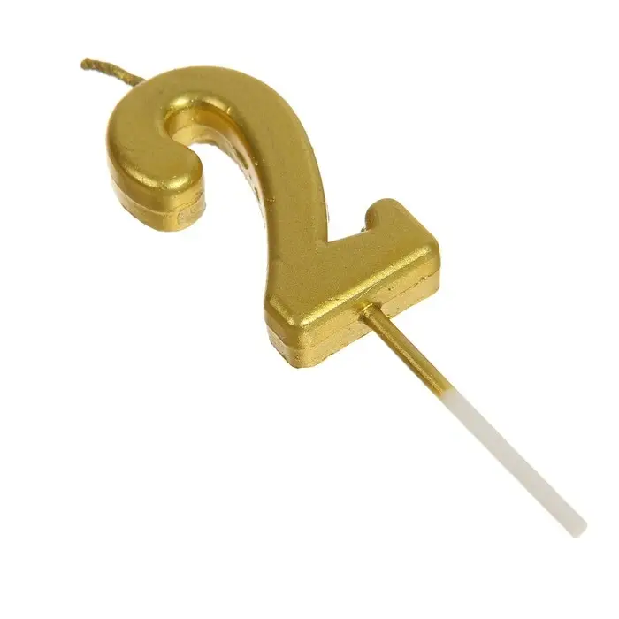Свеча в торт на шпажке «Цифра 2», золотая, 4.5×2.5 см