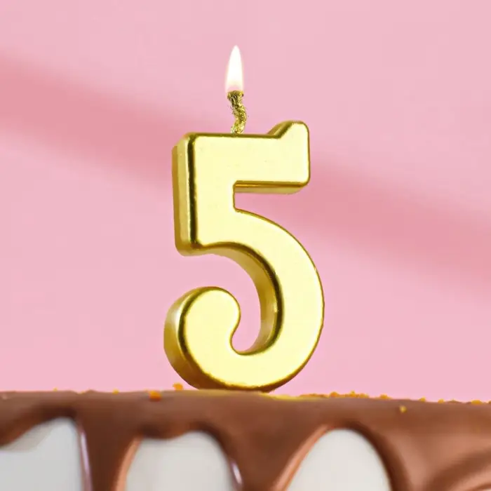 Свеча в торт на шпажке «Цифра 5», золотая, 4.5×2.5 см