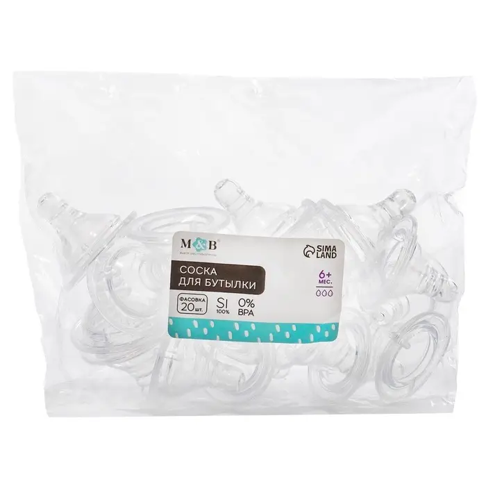 Соска на бутылочку M&B «Baby 1», антиколиковая, широкое горло Ø50 мм., от 6 мес., быстрый поток, фасовка по 20 шт.