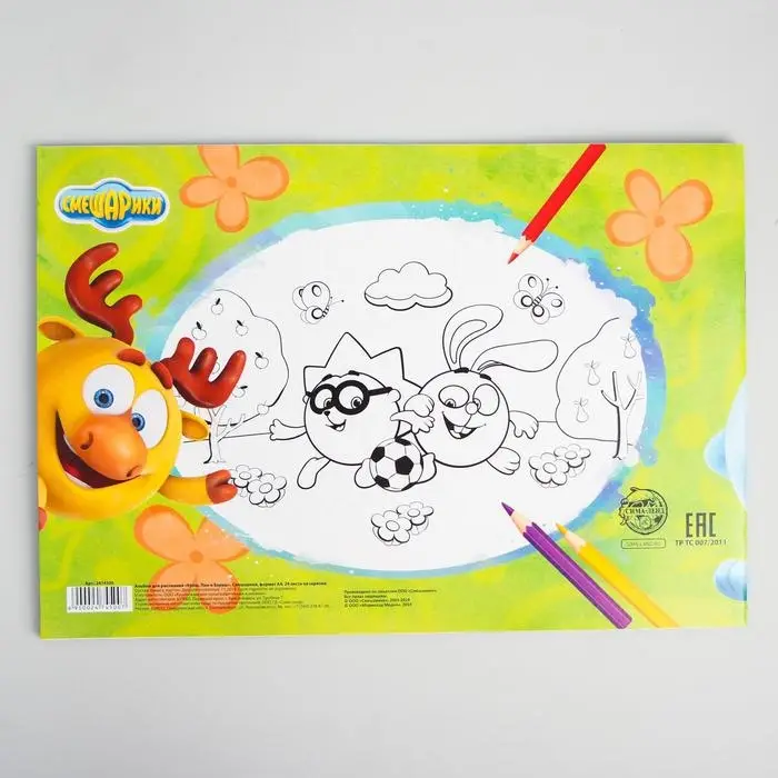 Альбом для рисования А4, 24 листа 100 г/м², на скрепке, «Смешарики»