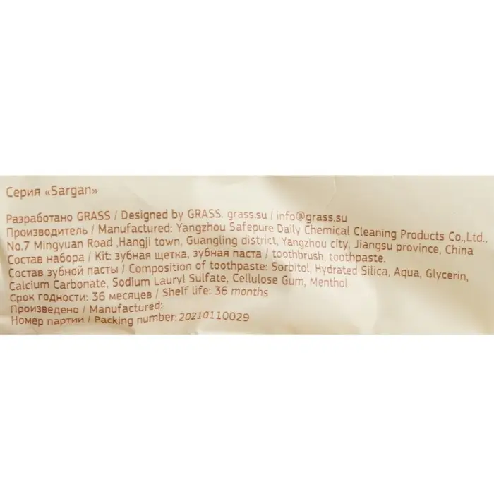 Зубной набор Sargan, флоу-пак, зубная щетка 18 см, зубная паста 6 г