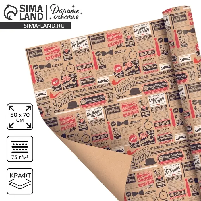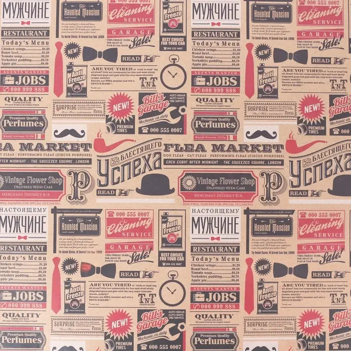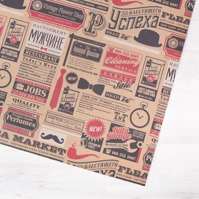 Бумага упаковочная крафтовая «Газетные вырезки», 50 х 70 см