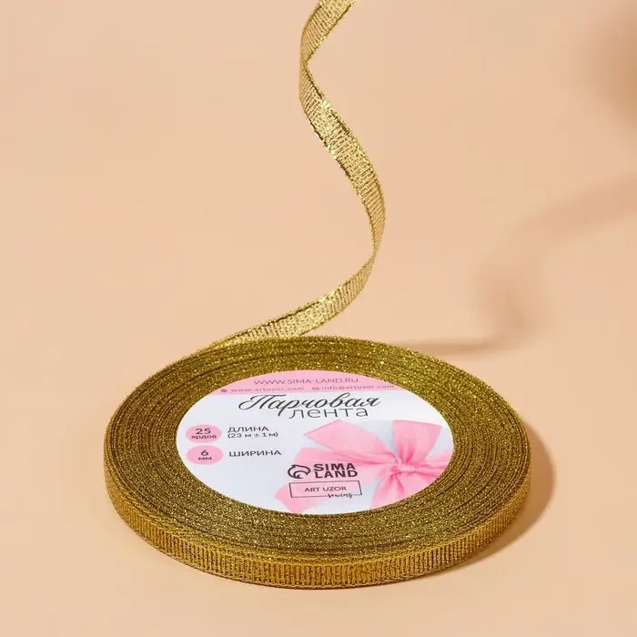Золотистая парчовая лента шириной 6 мм и длиной около 23 метров станет универсальным элементом для праздничного декора и рукоделия. Её насыщенный цвет и плотная текстура подходят для оформления подарков, создания украшений и акцентов в интерьере на Новый год и другие торжества.