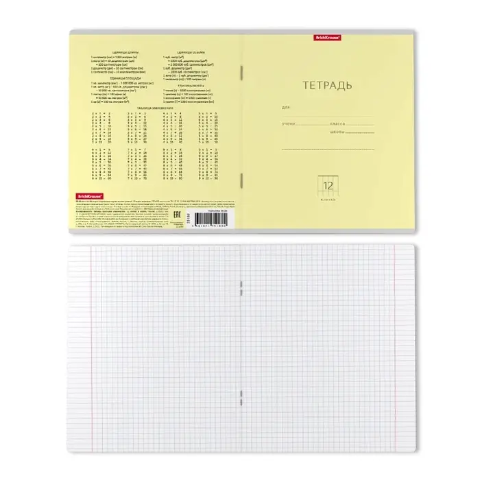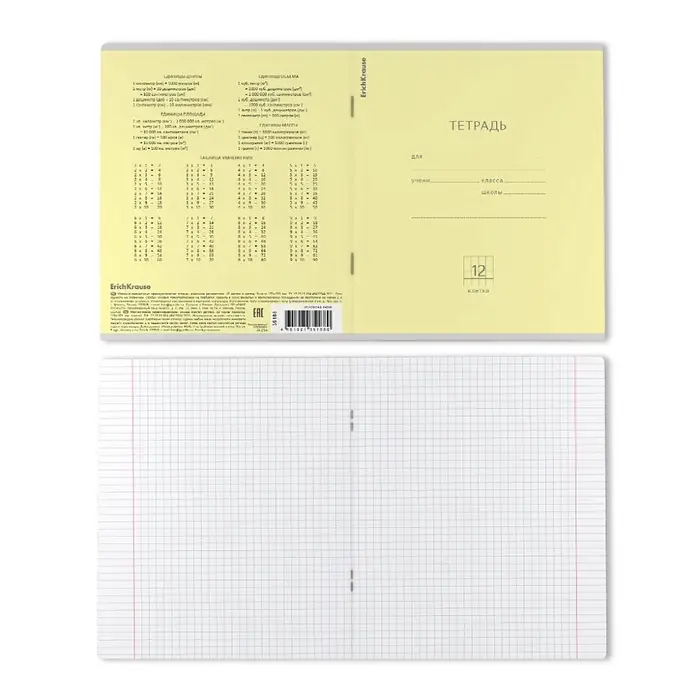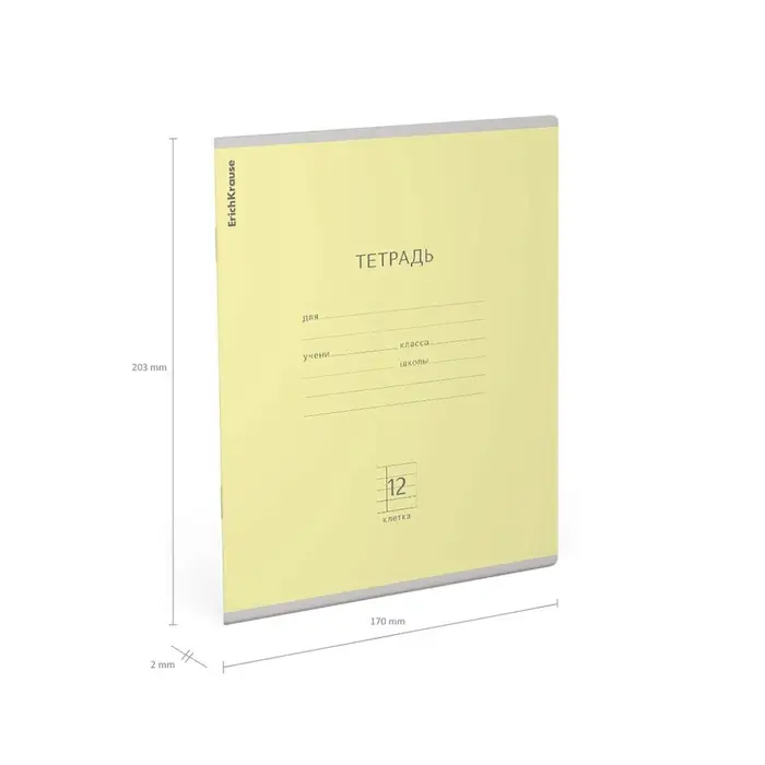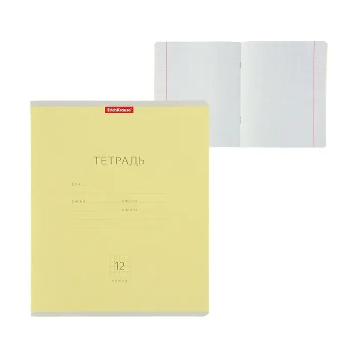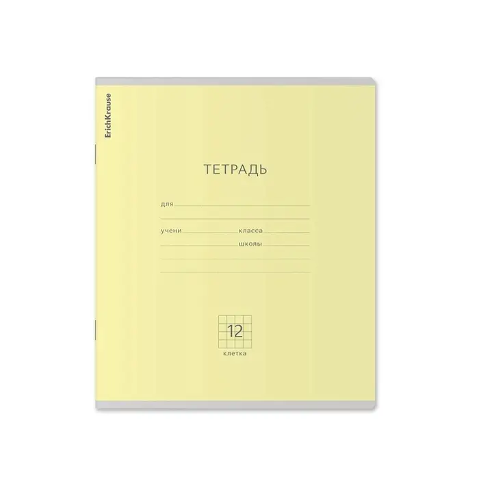 Тетрадь 12 листов в клетку ErichKrause «Классика», обложка мелованный картон, жёлтая