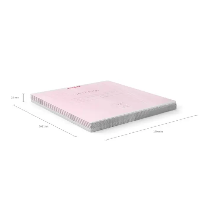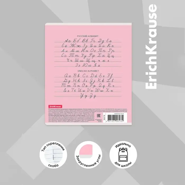Тетрадь школьная ученическая формата А5+ (170 х 203 мм). Обложка из высококачественного мелованного картона плотностью 180 г/м2. В блоке 12 листов в косую линейку с полями. Бумага офсетная плотностью 60 г/м2. Цвет линовки - синий. Скругленные уголки обложки и блока. Тип скрепления - скоба. Тетради упакованы в термоусадочную пленку по 10 штук.