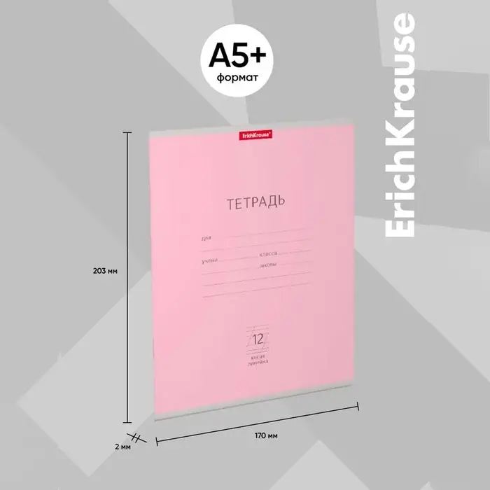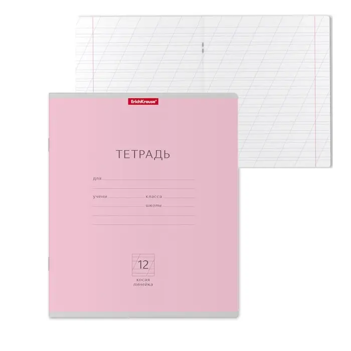Тетрадь 12 листов в косую линейку ErichKrause «Классика», обложка мелованный картон, розовая