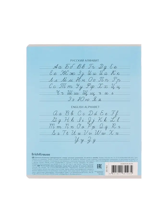 Тетрадь 12 листов в линейку ErichKrause «Классика», обложка мелованный картон, блок офсет, белизна 100%, голубая