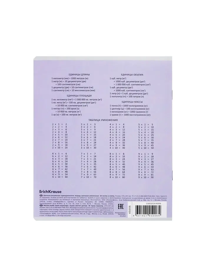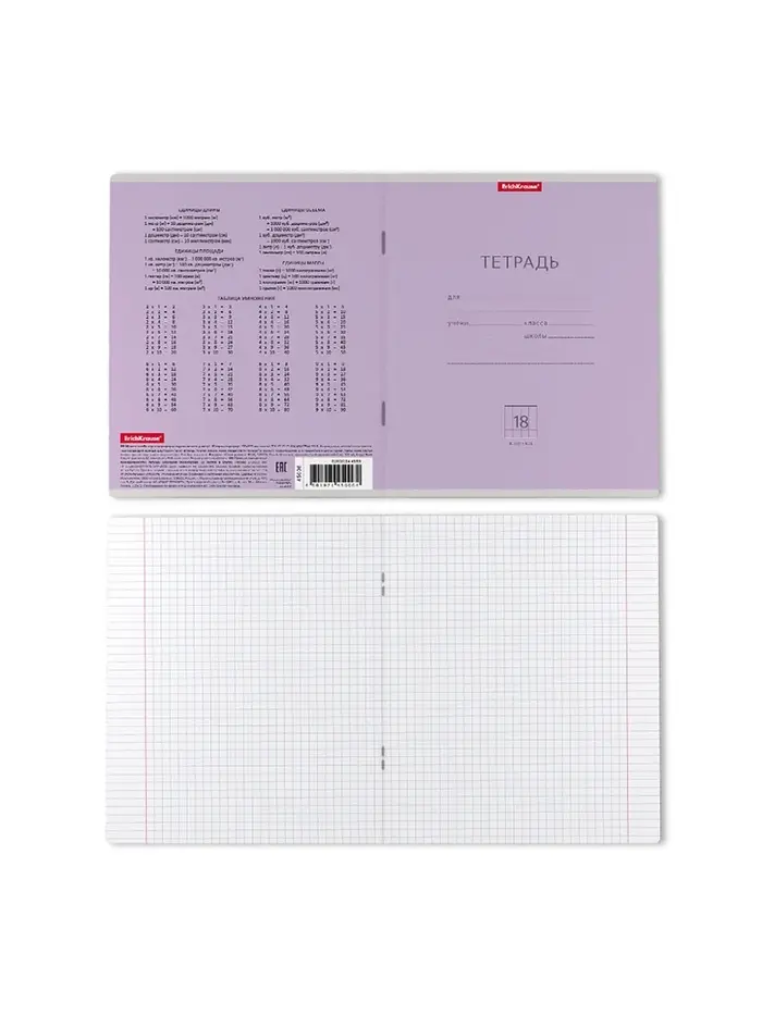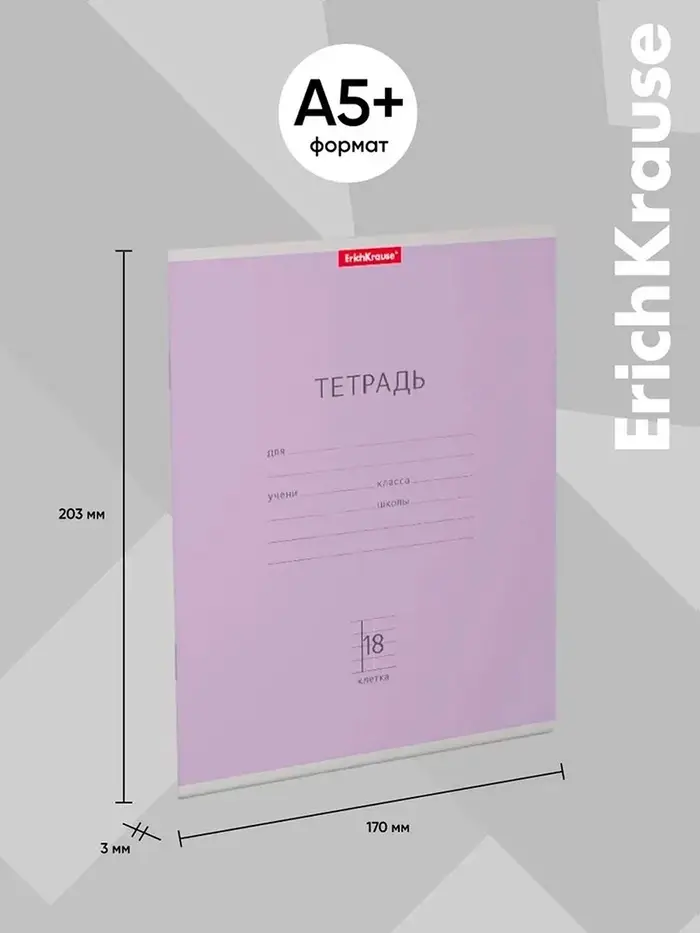 Тетрадь 18 листов в клетку ErichKrause «Классика», обложка мелованный картон, фиолетовая