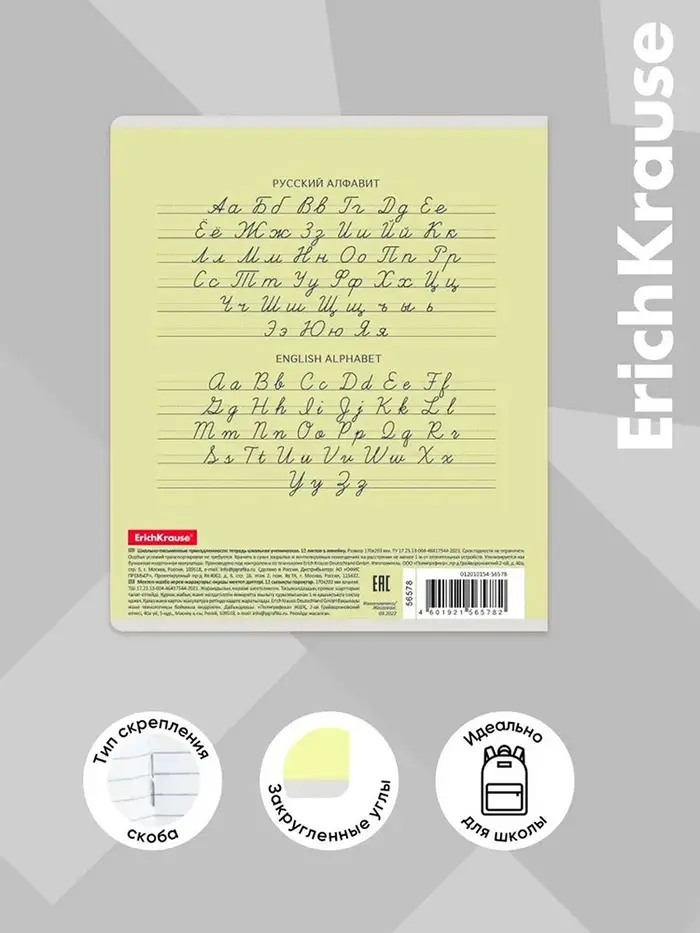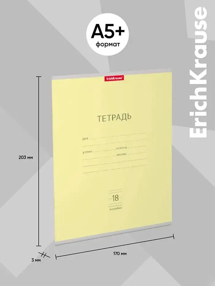 Тетрадь школьная ученическая формата А5+ (170 х 203 мм). Обложка из высококачественного мелованного картона плотностью 180 г/м2. В блоке 18 листов в линейку с полями. Бумага офсетная плотностью 60 г/м2. Цвет линовки - синий. Скругленные уголки обложки и блока. Тип скрепления - скоба. Тетради упакованы в термоусадочную пленку по 10 штук.