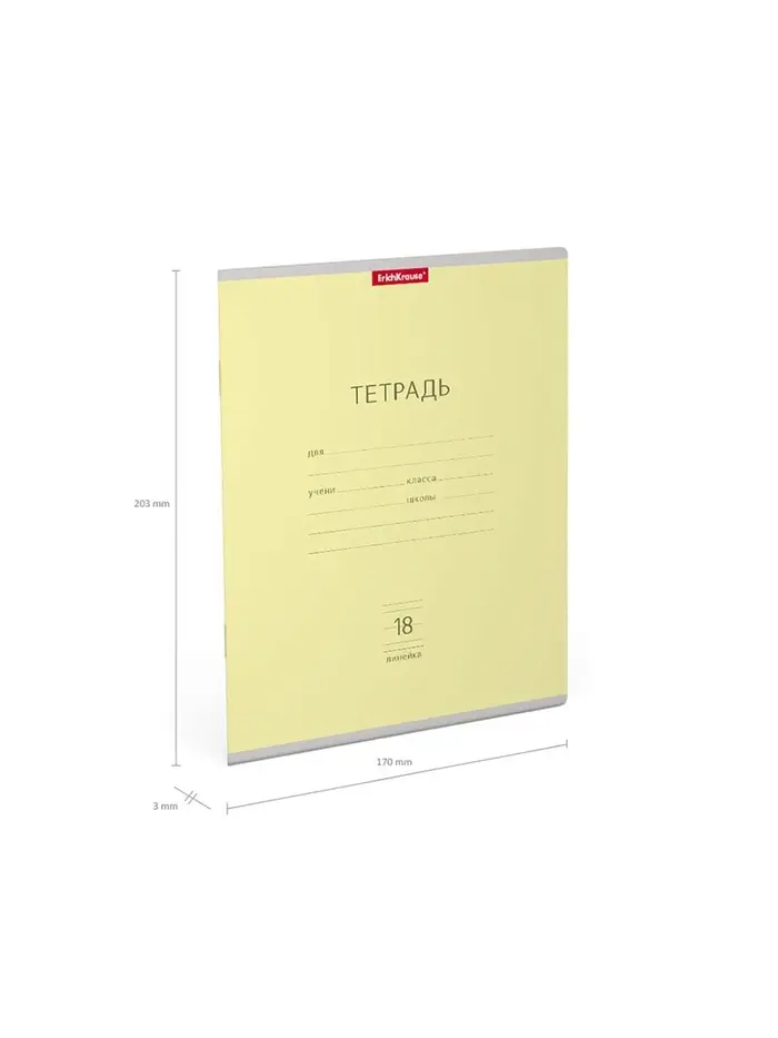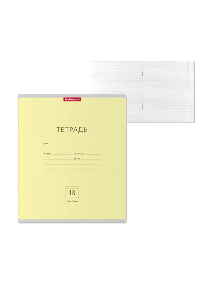 Тетрадь 18 листов в линейку, ErichKrause «Классика», обложка мелованный картон, жёлтая